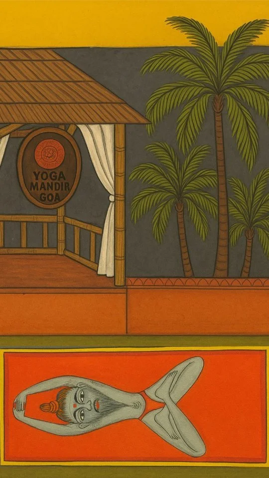 Yoga Mandir Goa is a yoga teacher training school nestled in a quiet corner of Palolem, right next to a peaceful wetland. Yoga classes here are always attended by chirping birds, playful langurs, and sometimes a lizard or two.